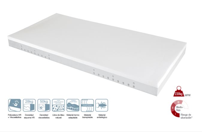 • Capa superficial de espuma viscoelástica termofoam, de alta densidad, 50 kg/m3; con 5 cm de grosor.