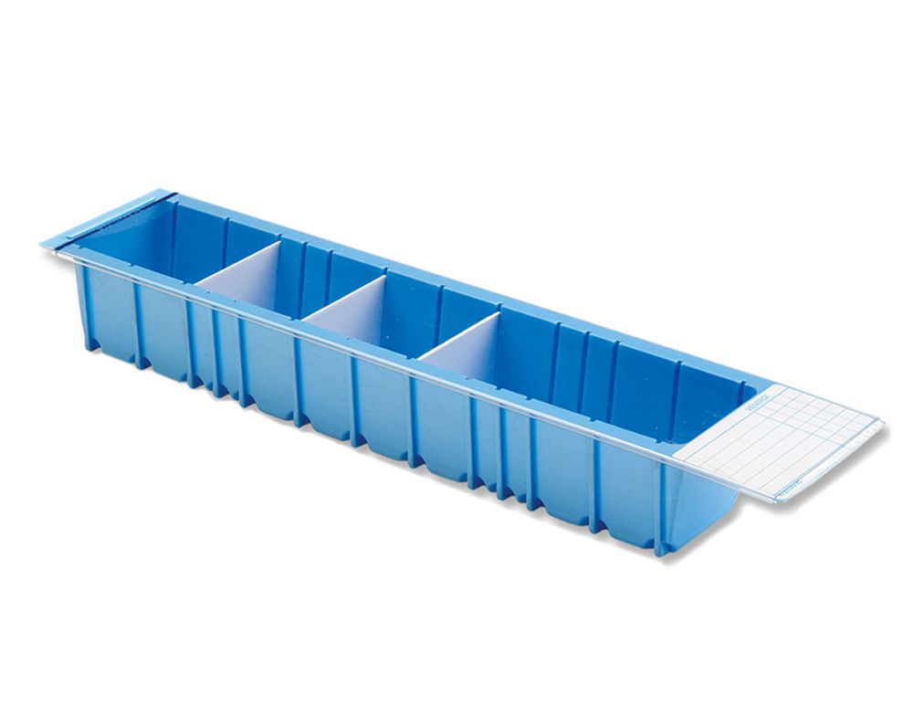 Subdividible hasta un máximo de 10 compartimentos profundos, en los que se puede introducir el vasito ref. 71.