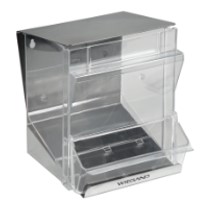 Práctico dispensador para las tapas de los vasitos de medicación MediCup Multi de Wiegand.
