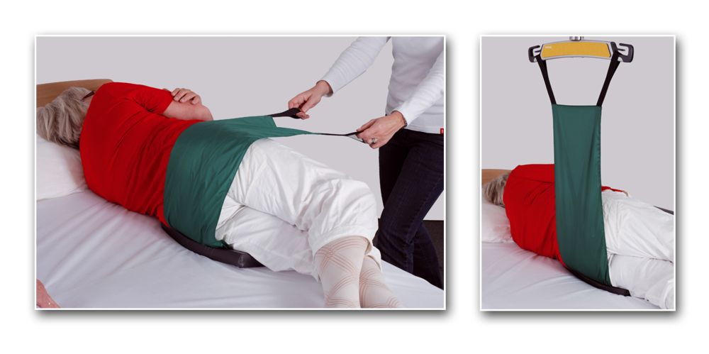 La lateralización mediante Etac Hipturner se puede realizar manualmente o en combinación con una grúa