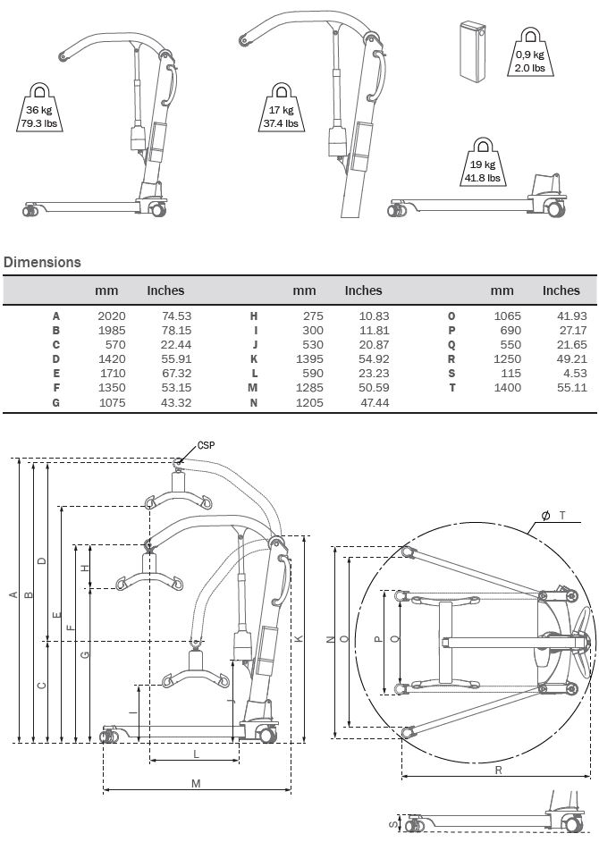 Dispone de un excelente rango de elevación, de 30-171 cm. Con su percha estándar de 4 puntos, y usada en combinación con un arnés Molift, proporciona una posición confortable y espaciosa para el usuario.