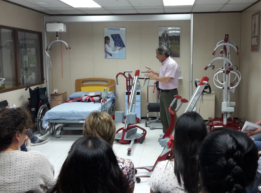 La sesión empezó con una demostración por parte del técnico de producto de Karinter de las principales grúas Molift, tanto las de bipedestación como las grúas pasivas, así como el uso correcto de sus arneses.