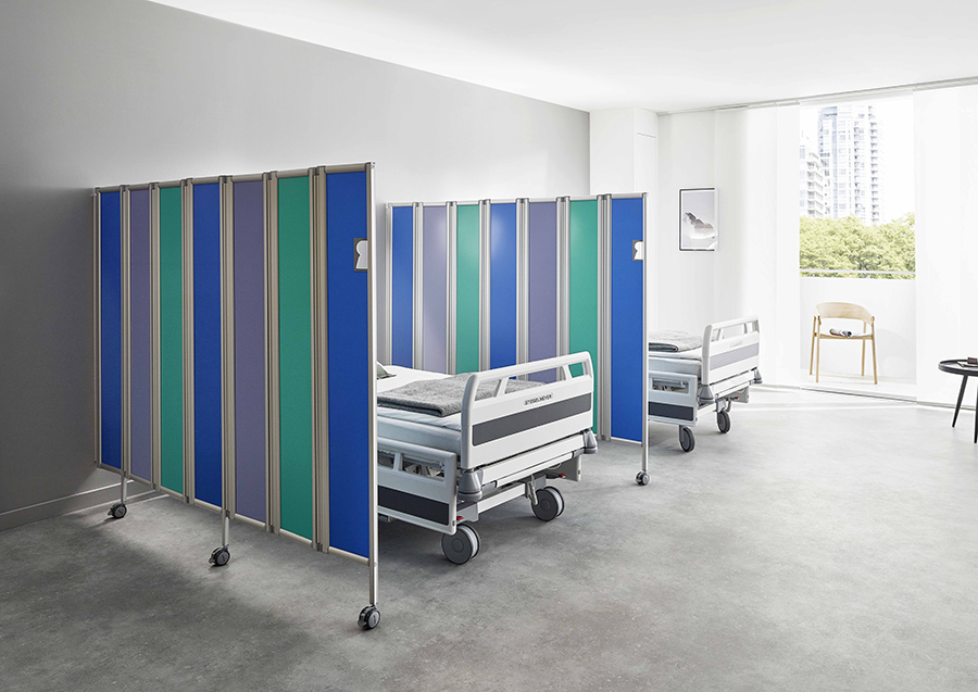 Con las mamparas plegables Ropimex® se puede proteger la intimidad de los pacientes en el ámbito sanitario y geriátrico de forma decorativa y elegante, o bien pueden emplearse simplemente para dividir una sala. Se ponen en uso, se pliegan y se guardan rápidamente. Son ligeras pero muy robustas. Son translúcidas (dejan pasarla luz al través) pero impiden ver lo que está detrás. Esta peculiaridad del material permite a la sala preservar su ambiente cálido, manteniendo al mismo tiempo un aspecto funcional.