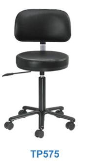 • Taburete a gas con respaldo, base pintada negra, con 5 ruedas.